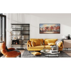 Bring atmosphere into your interior with the beautiful painting The Square by the talented Caspar van Houten. This unique artwork, with a square size of 100 x 100cm, is painted on high-quality linen. The sides are painted along for a clean, seamless look. Thanks to the hanging system, the painting will hang on your wall in no time. Want an extra stylish presentation? Then choose, for example, an elegant black baking frame.