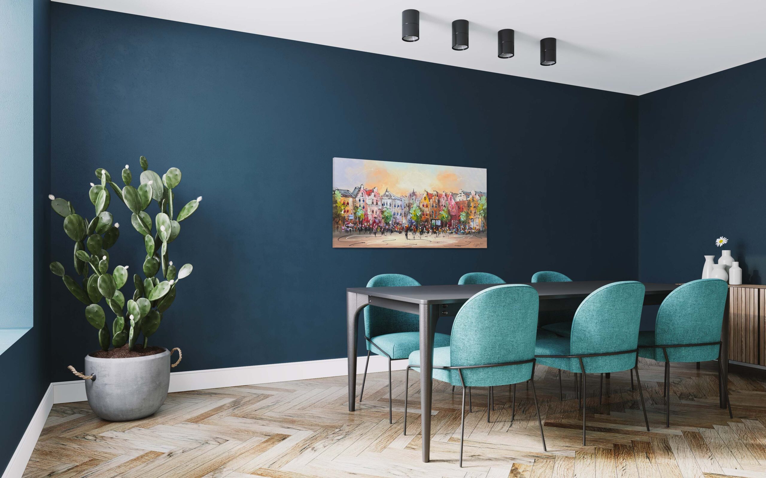 This beautiful original painting “The Square” by the talented artist Caspar van Houten, has a nice oblong size of 70 x 140cm. This unique piece is painted on high-quality linen, with the sides carefully painted along for a seamless look. The painting features a hanging system, allowing it to be hung directly on the wall. For an extra fine presentation, you can choose to have the artwork framed in, for example, a sleek, black box frame.