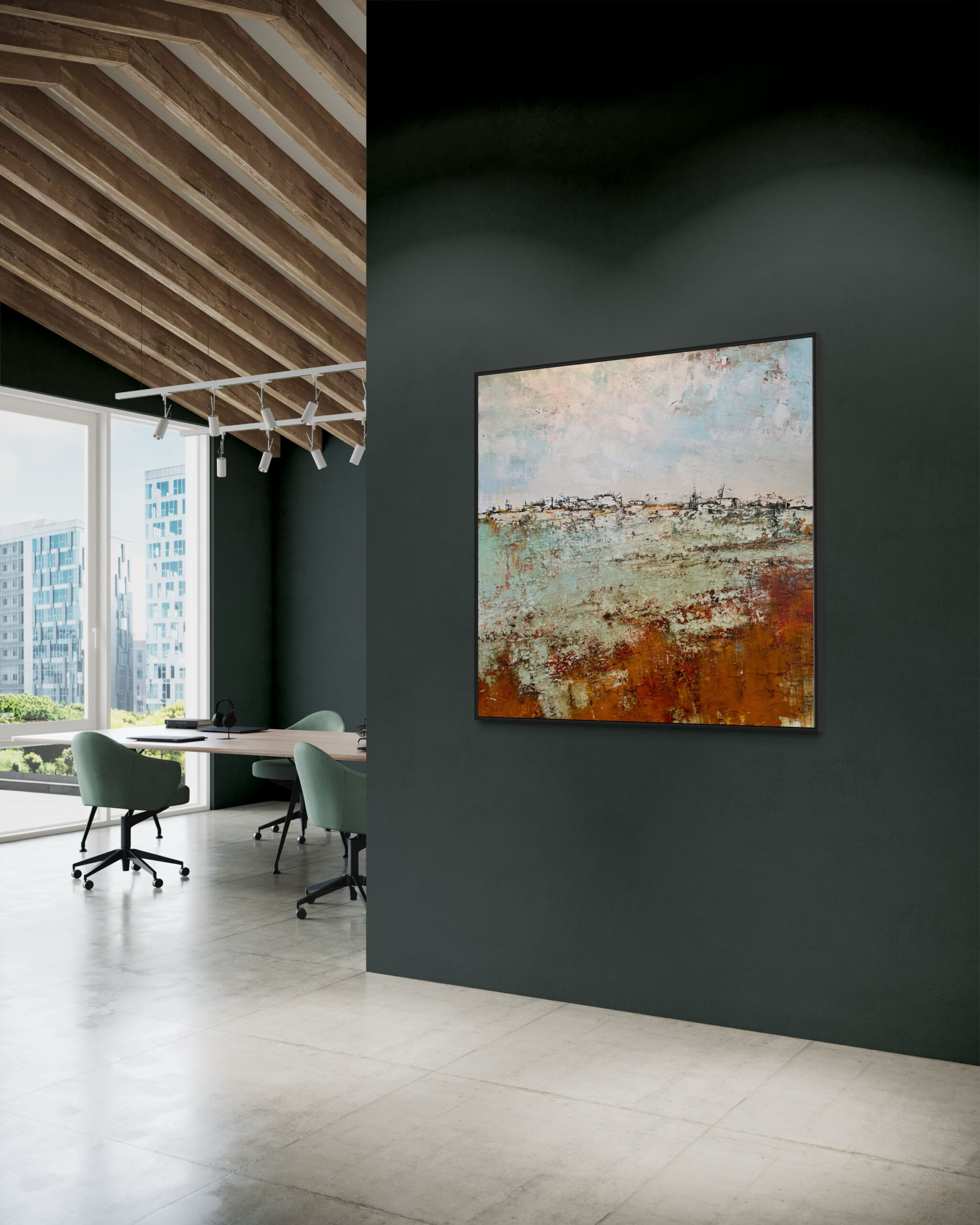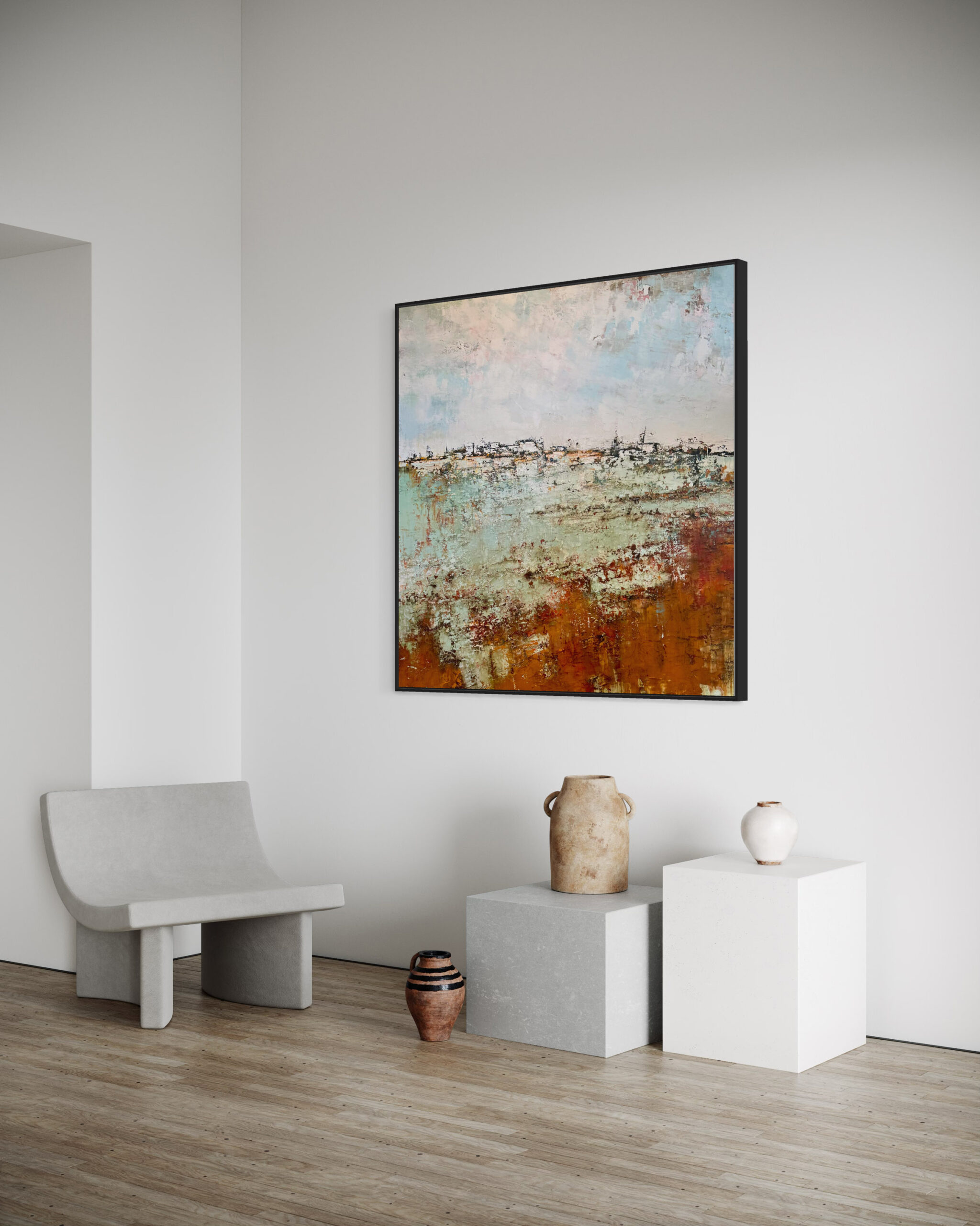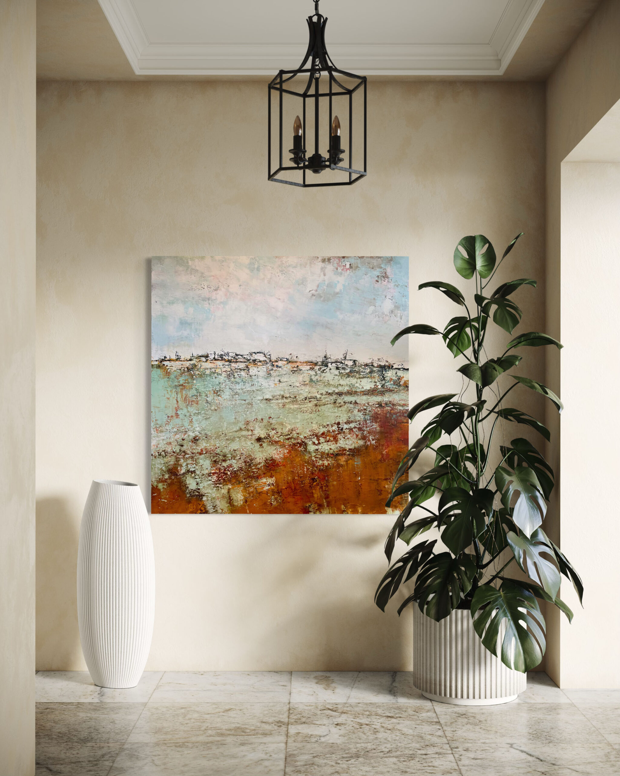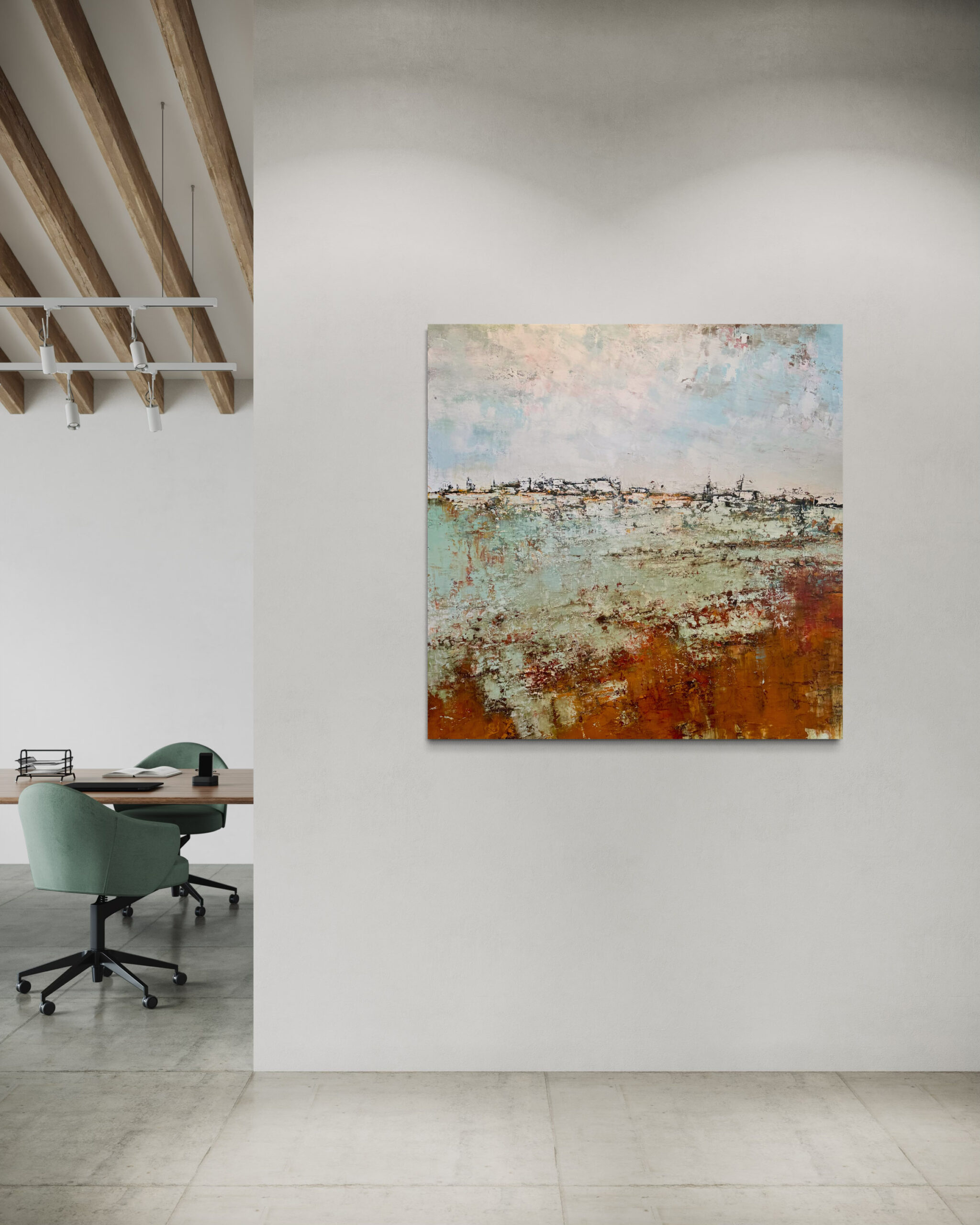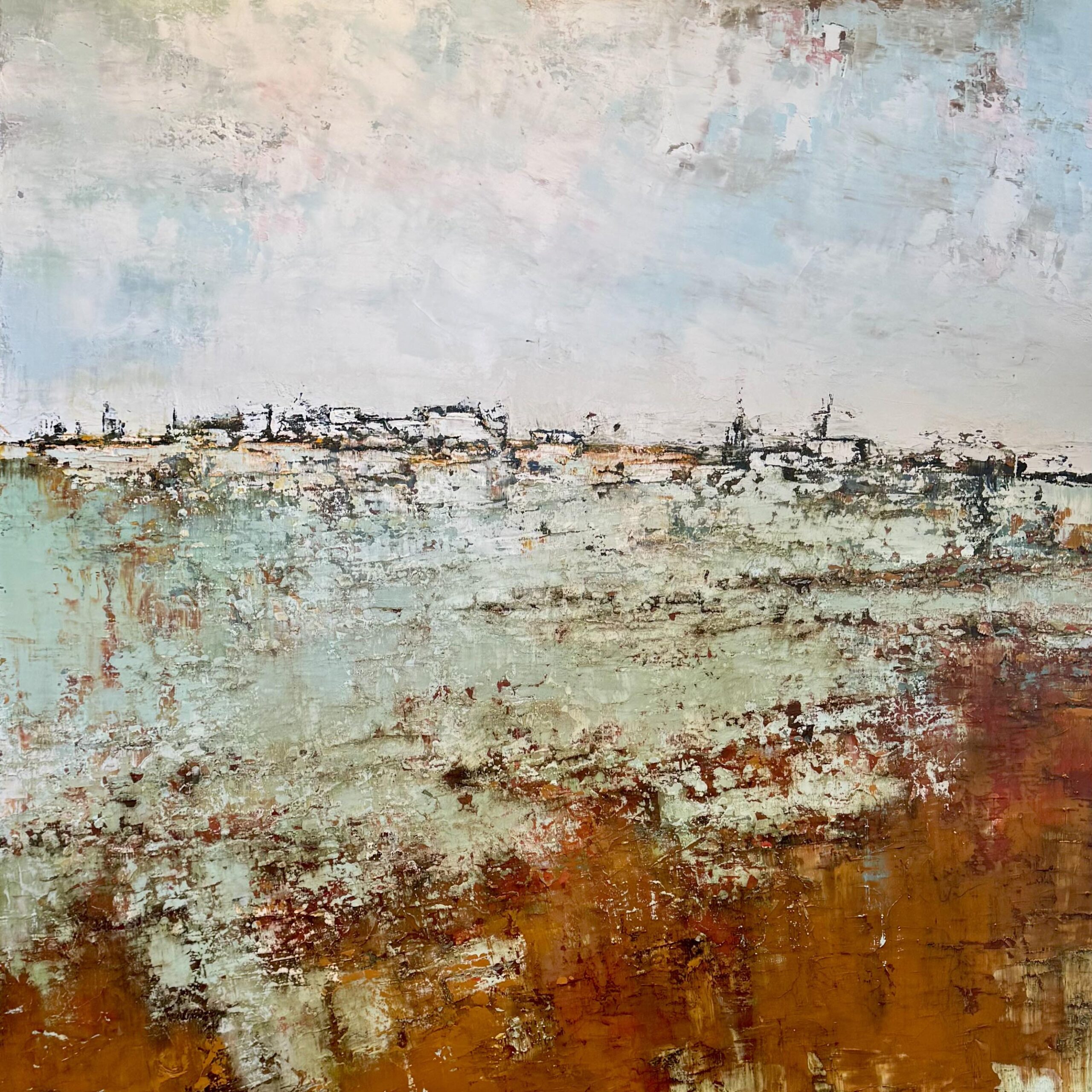 With this artwork, Emiliana brings to life the intense atmosphere of the landscape, where the rich application of paint and pigments results in a painting with impressive depth and texture. This work exudes a classical charm, thanks in part to the beautiful “Dutch skies,” while at the same time being unmistakably modern.