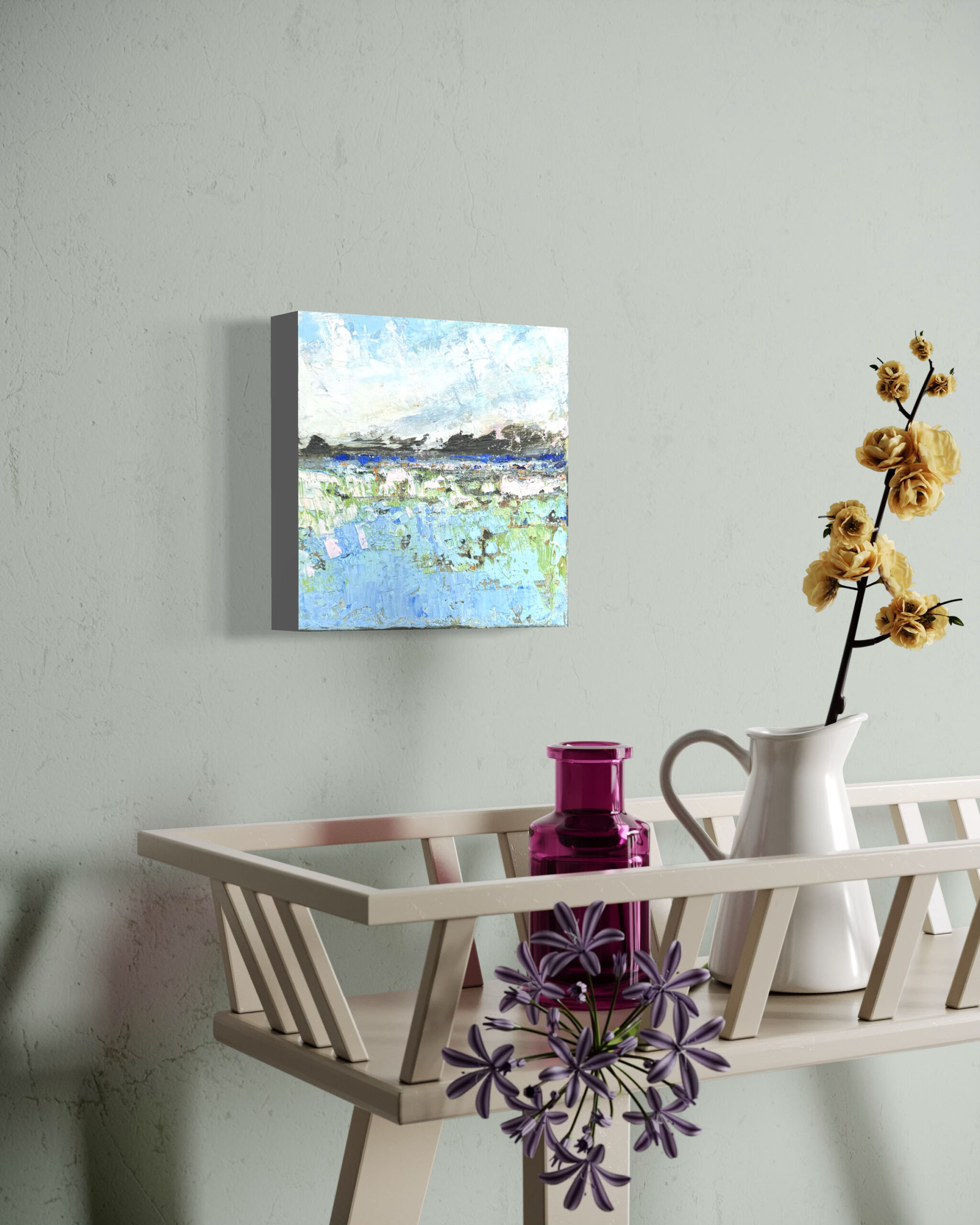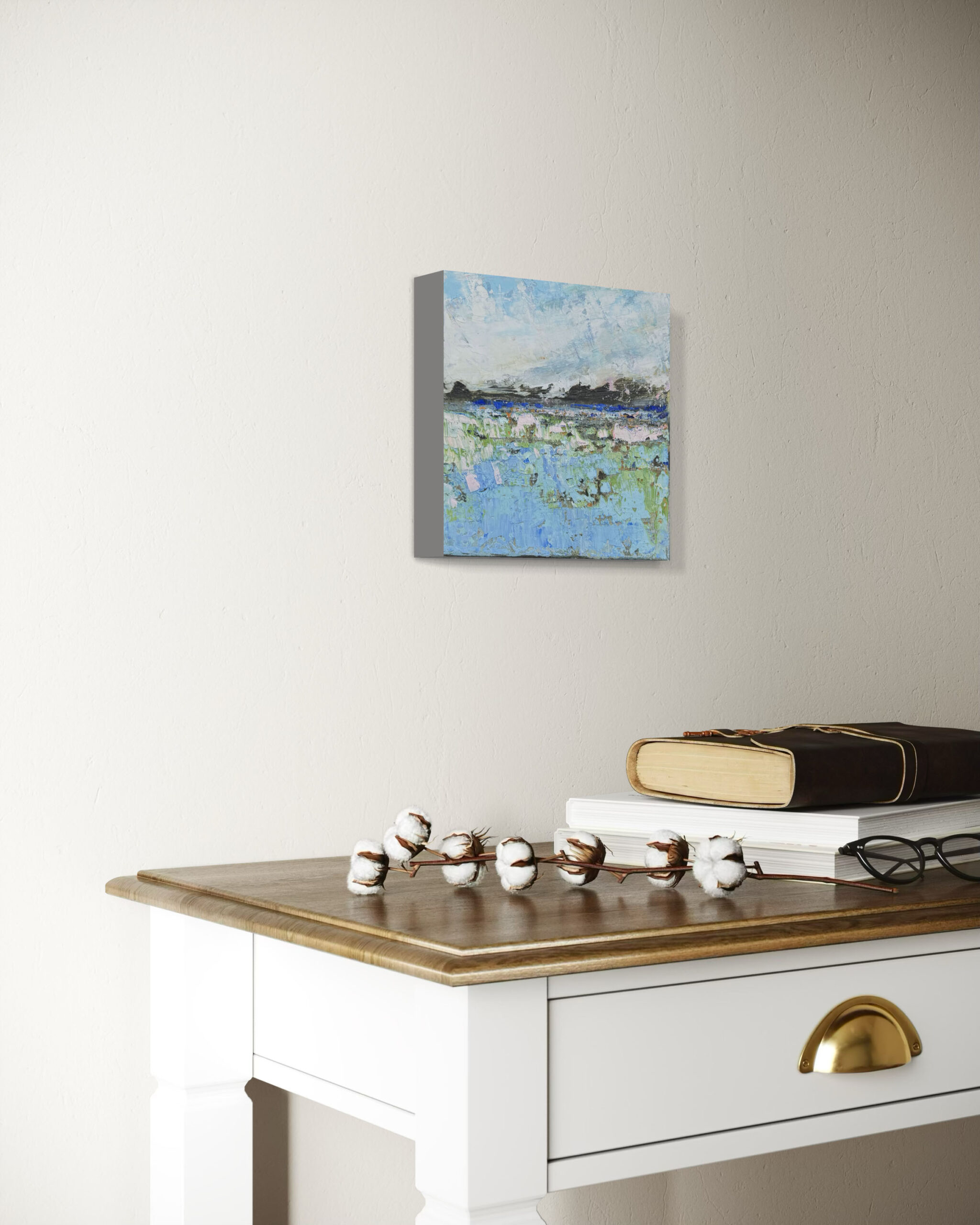 Sky and Earth Entwine is a small, but impressive, painting from Emiliana’s latest Landscape Miniature series. A series of original paintings in oil in which Emiliana depicts her signature features in a small work of art. The size is 20 x 20cm and the canvas is 4cm thick. So this also makes it possible to put the artwork down. The work is made with thick layers of oil paint on high quality linen, carefully stretched over a sturdy frame. This artwork is painted on the sides and can be hung without a frame. This artwork is obviously a one-of-a-kind and comes with a certificate of authenticity. It is on display in our gallery in Amersfoort and is also available in our art loan. Ordering online is of course also possible. Shipping in the Netherlands €8,95 – shipping within 1-3 working days. Foreign orders: shipping costs are shown during the ordering process. Please feel free to contact us for all your questions.