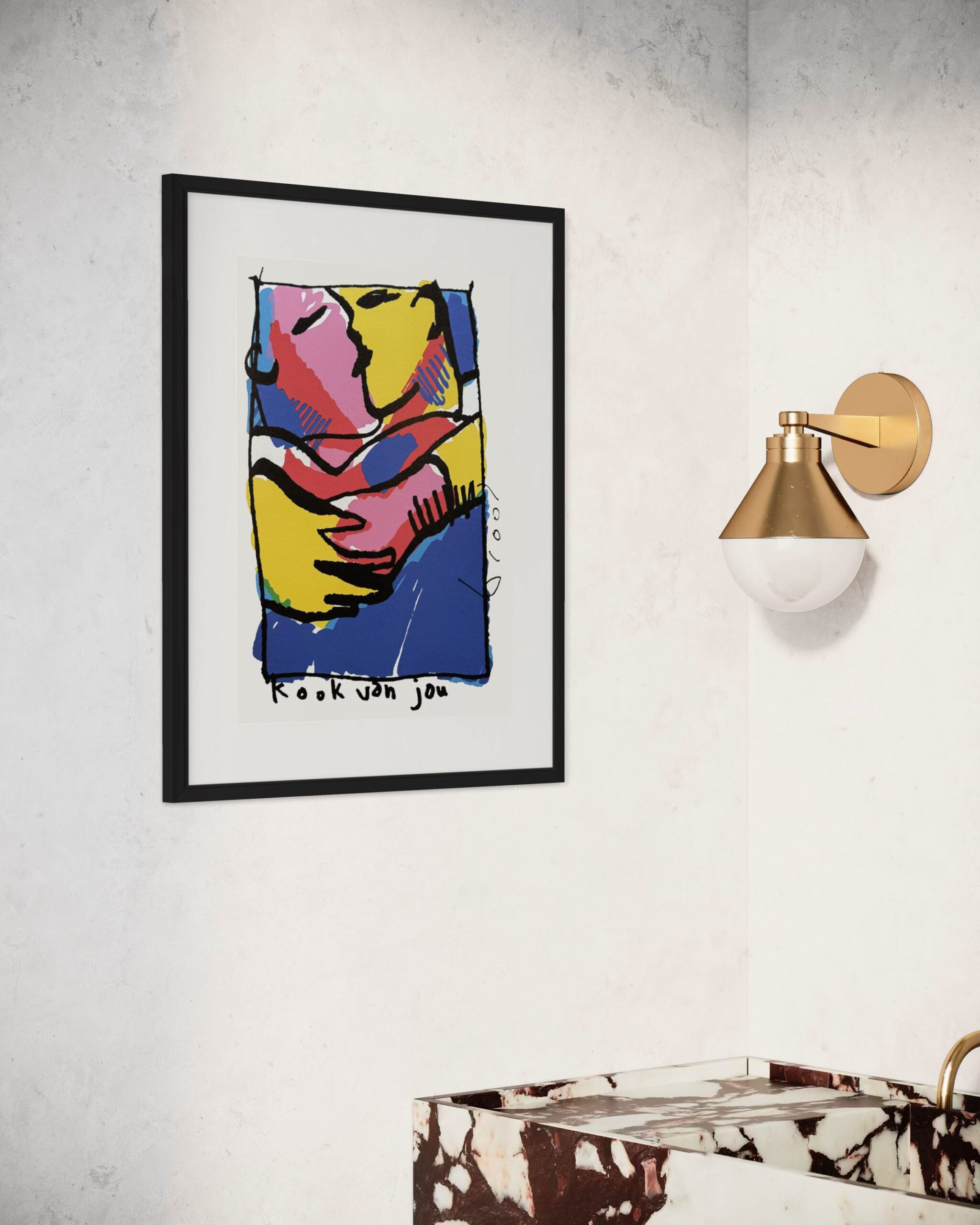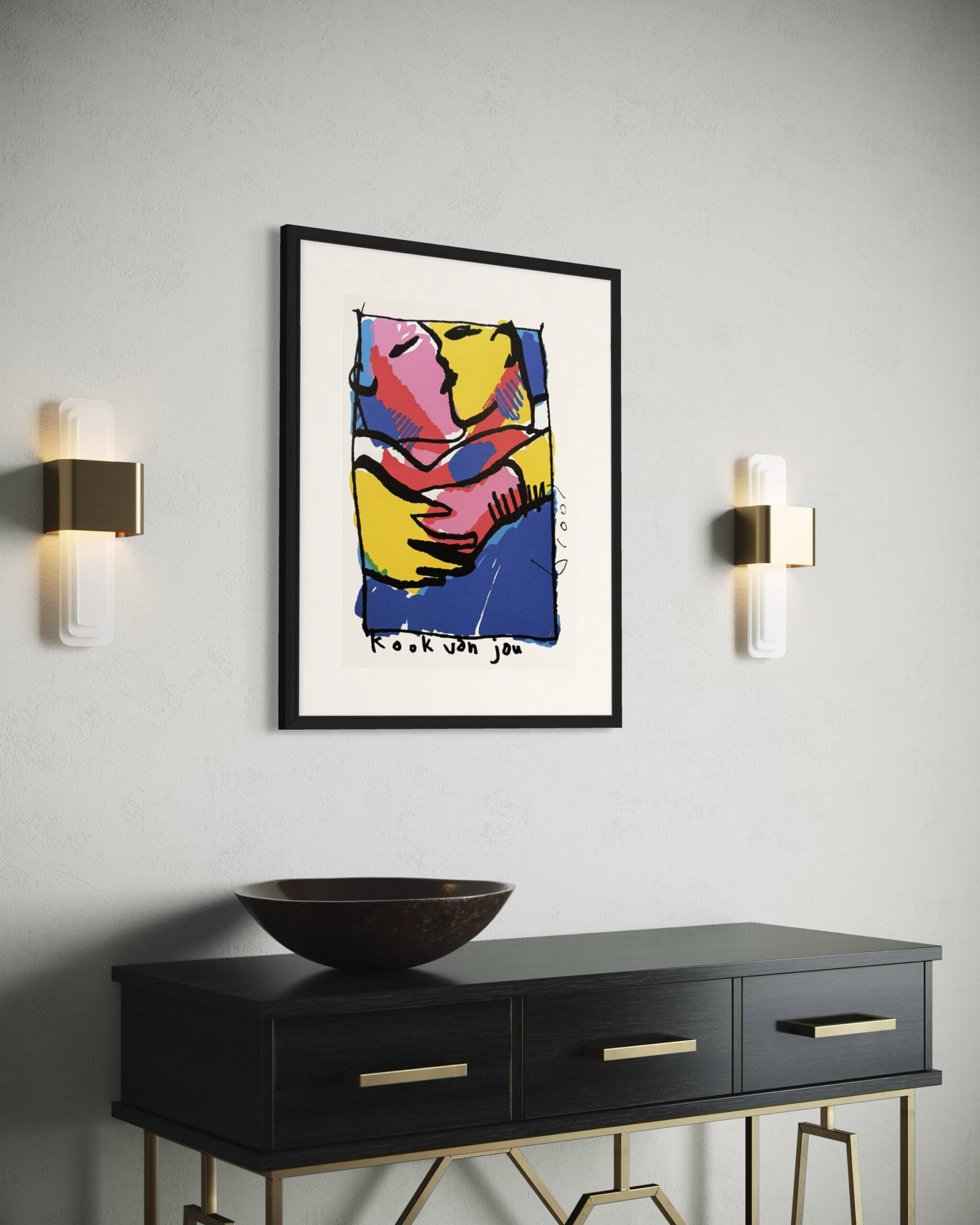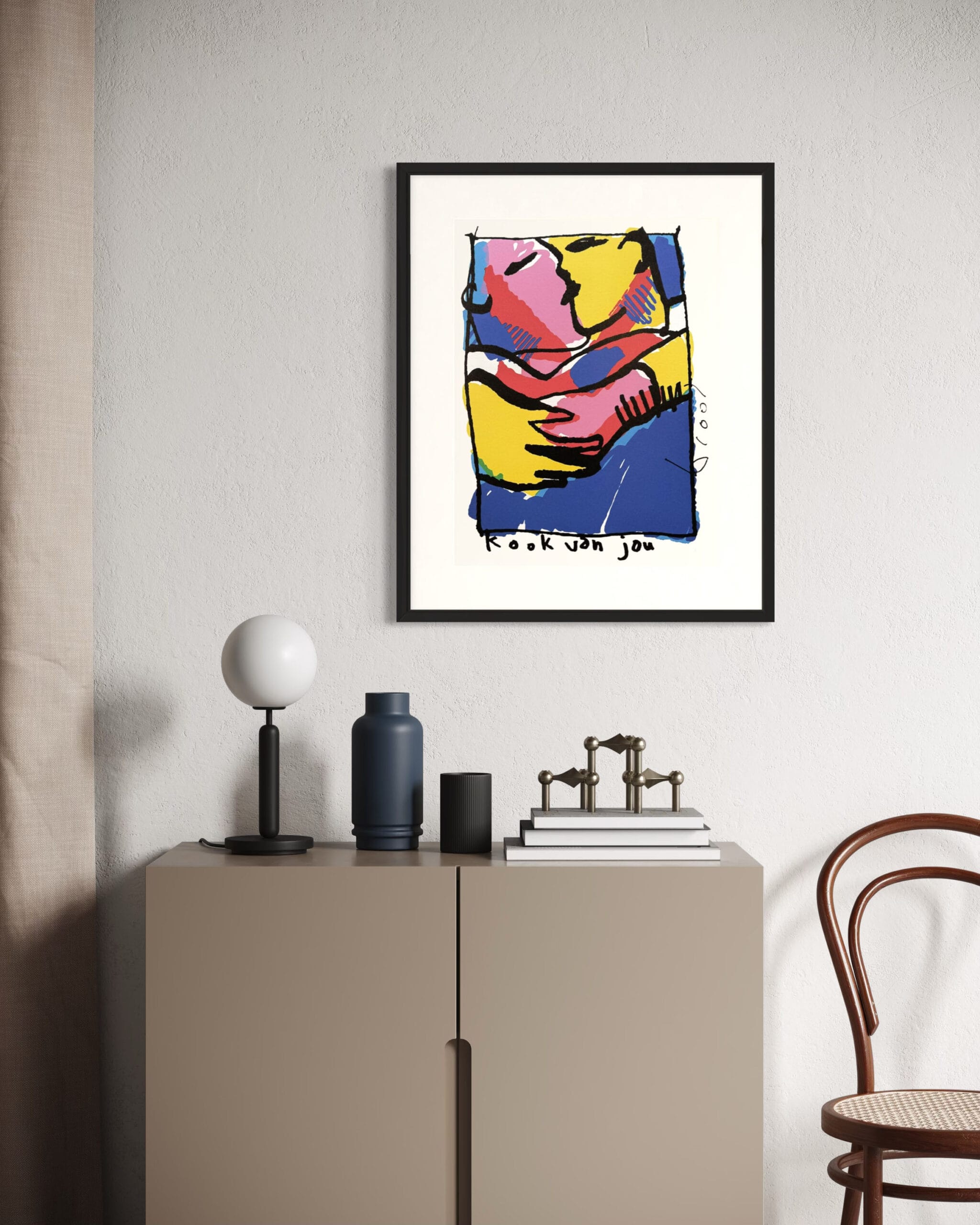The silkscreen Kook van Jou is also available in our art loan and is also available for purchase online. Delivery time is 1-3 business days. Would you like to view the artwork in our gallery first? You are most welcome. The artwork comes with a certificate of authenticity.