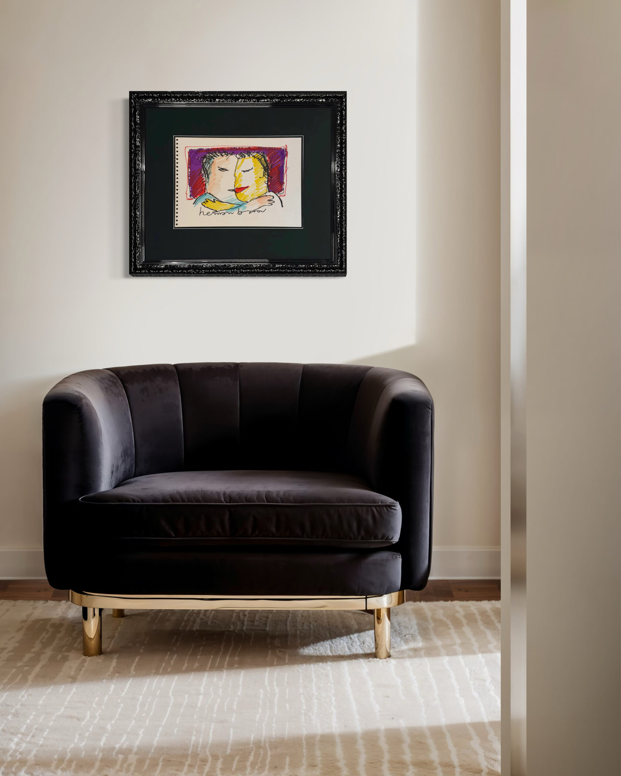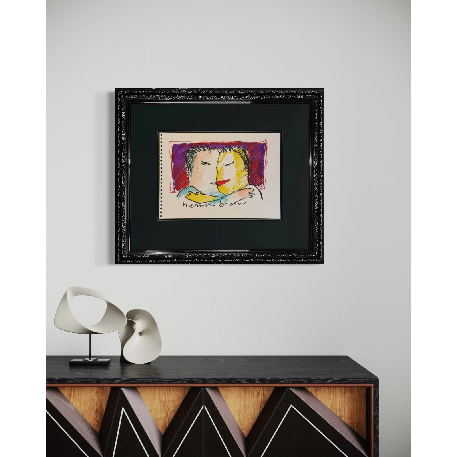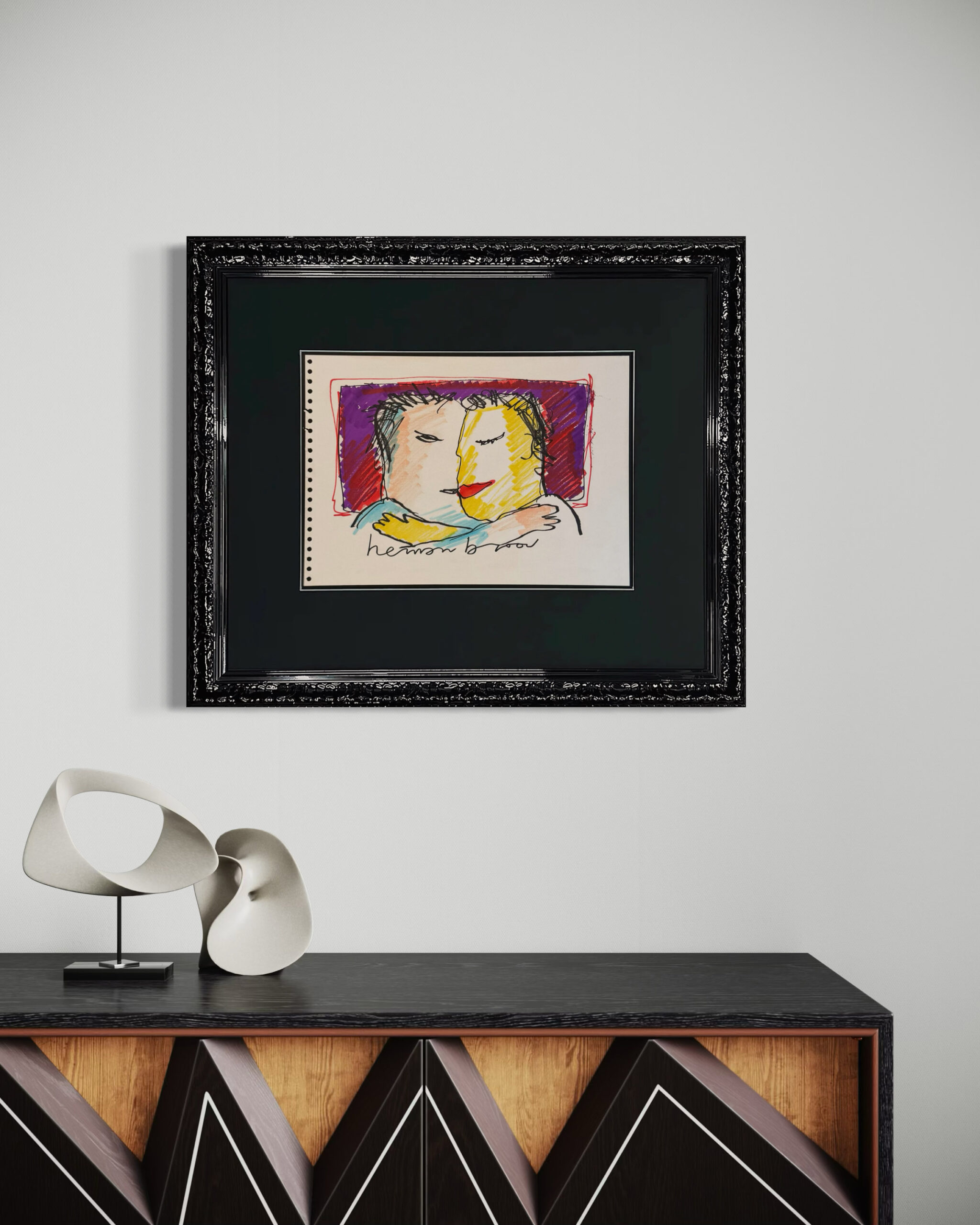 ‘The Kiss’ is an original drawing by Herman Brood. Unlike the limited edition silkscreens he made, this is a unique work of art. This drawing offers a rare opportunity to bring an authentic piece of Brood’s creative world into your home. Looking for a nice gift or are you a real Herman Brood lover yourself? With ‘The Kiss’ you get a unique work of art in your home.