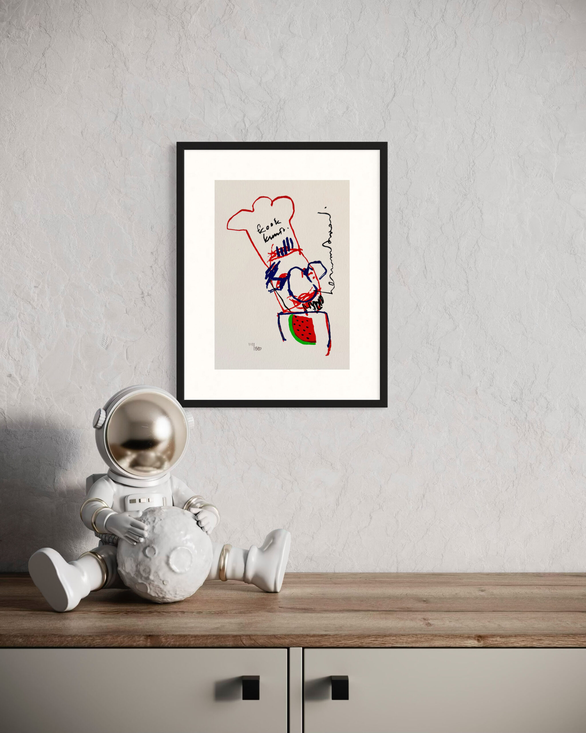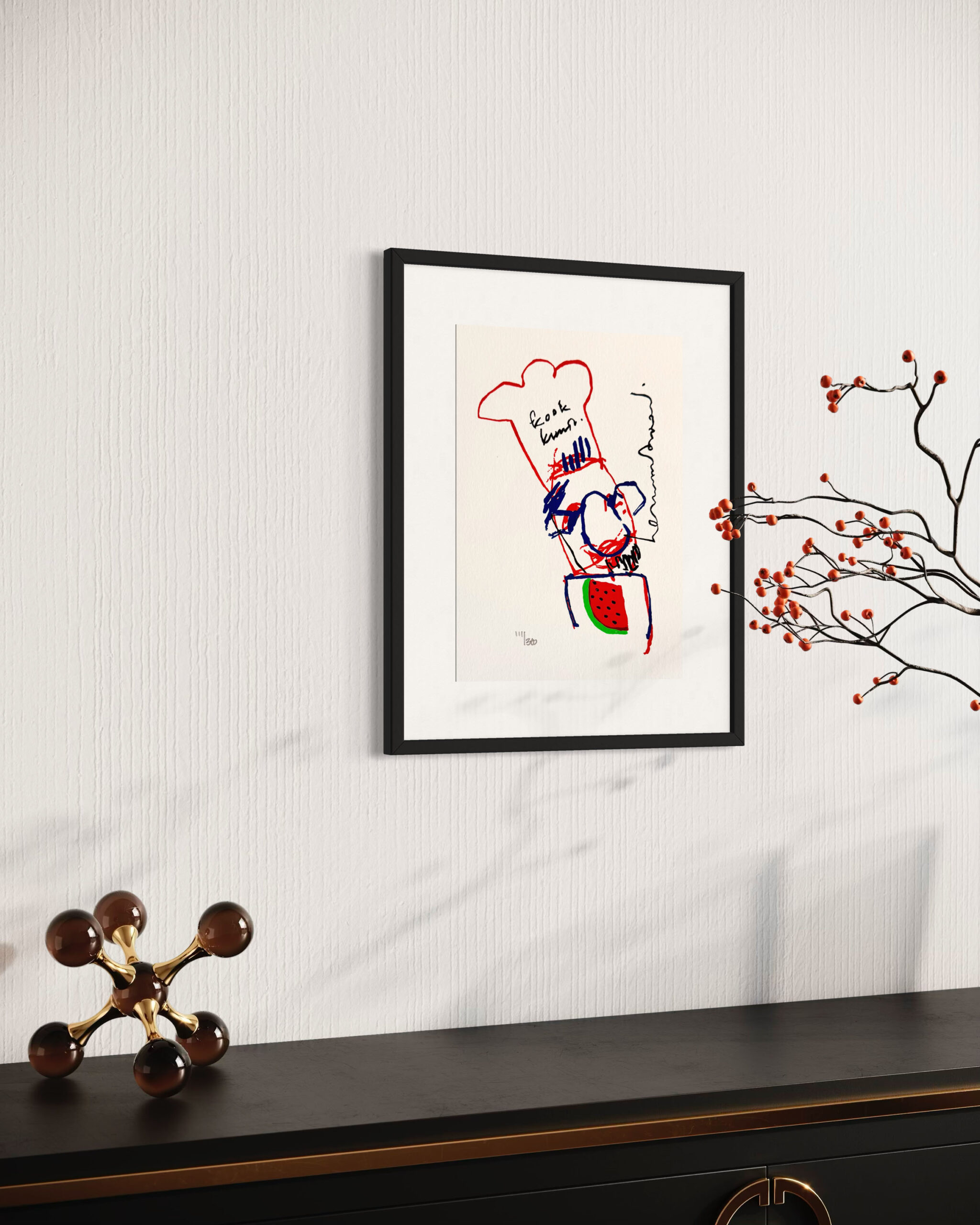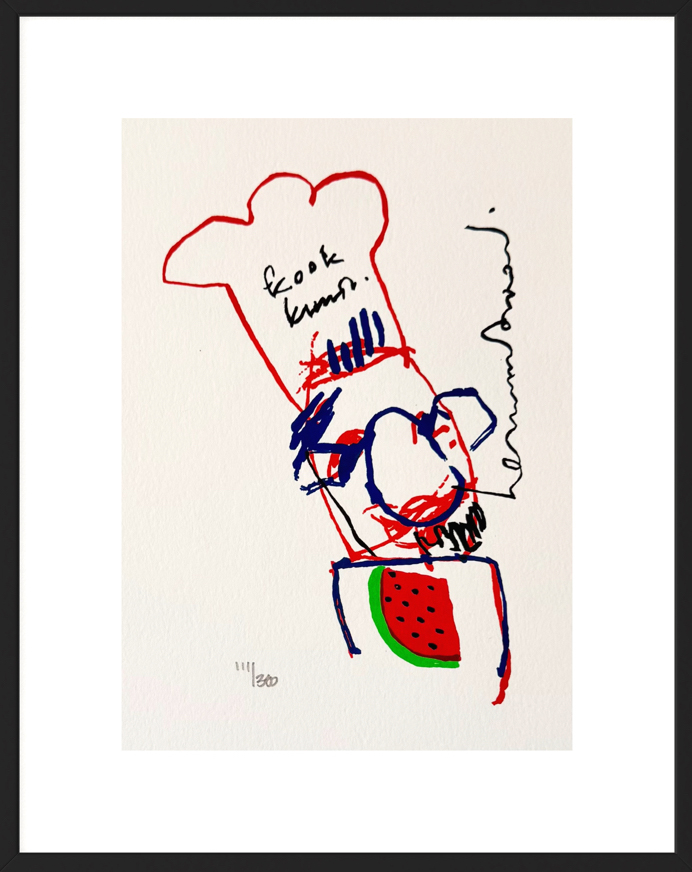 Beautiful screen print by Herman Brood. “Cooking.” This artwork exudes Bread’s signature style and energy, perfect for any art lover. The original silkscreen is numbered and has an imprinted signature. The edition of the silkscreen is 350 copies. The overall size is 25×31 cm and the artwork is in excellent condition. “Cooking Art” is in stock in our gallery and also available to order online. The perfect gift for every (hobby) cook, Bread and art lover! Shipping in the Netherlands €8,95 (other countries: shipping costs are visible during the checkout process). Delivery time 1-3 business days.