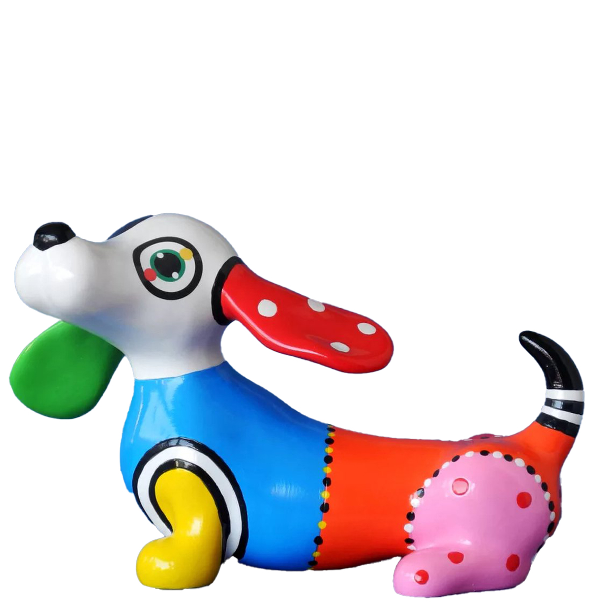Discover James, a beautiful art sculpture by talented artist Jacky Zegers. This dachshund is not just a decorative object; it occupies a funny and crazy position that puts an instant smile on your face. With its unique patterns and cheerful colors, James is a real eye-catcher! The height of James is 16.5 cm and the length is 27 cm. You can easily order the sculpture online or in our gallery in Amersfoort.