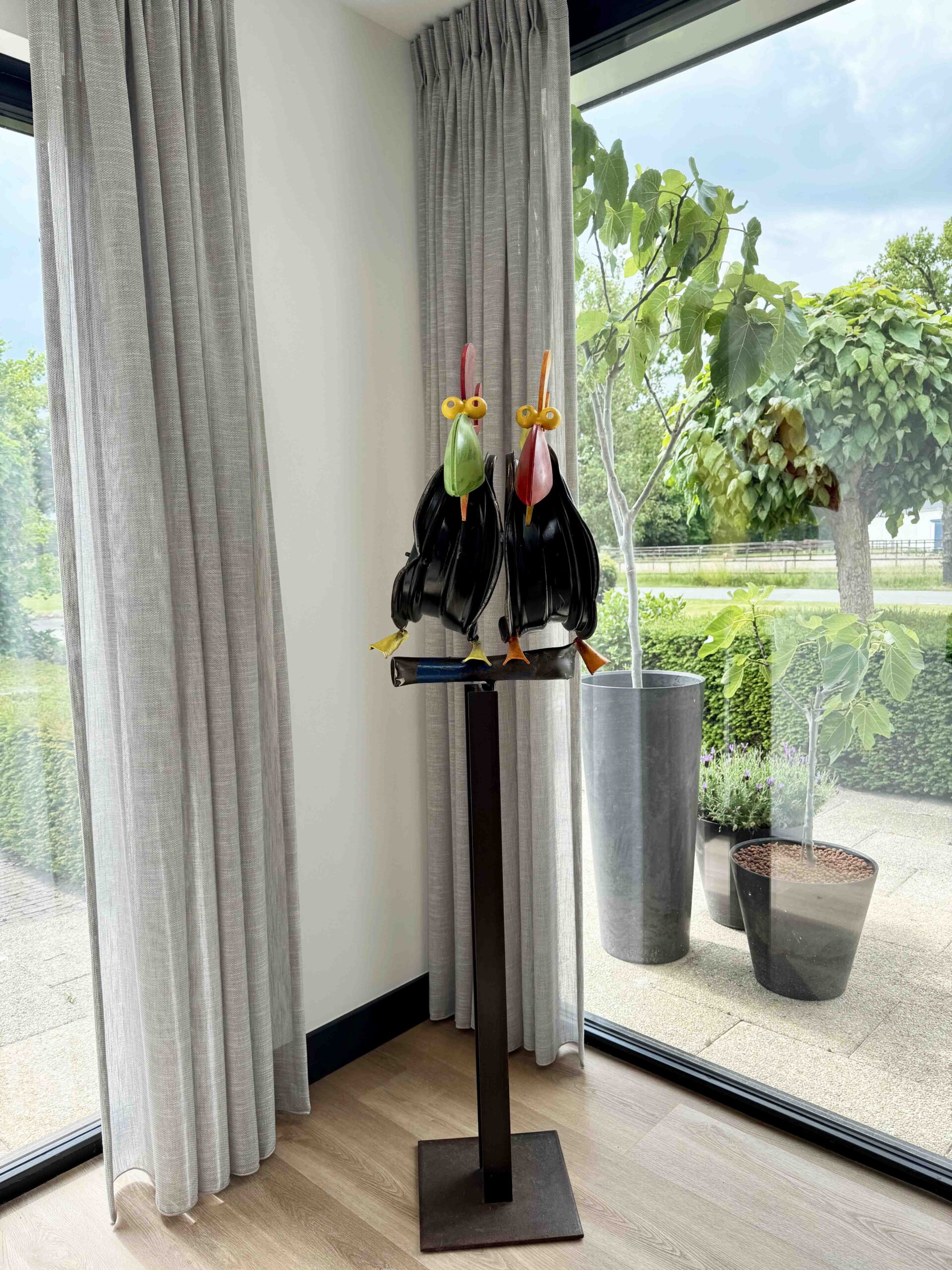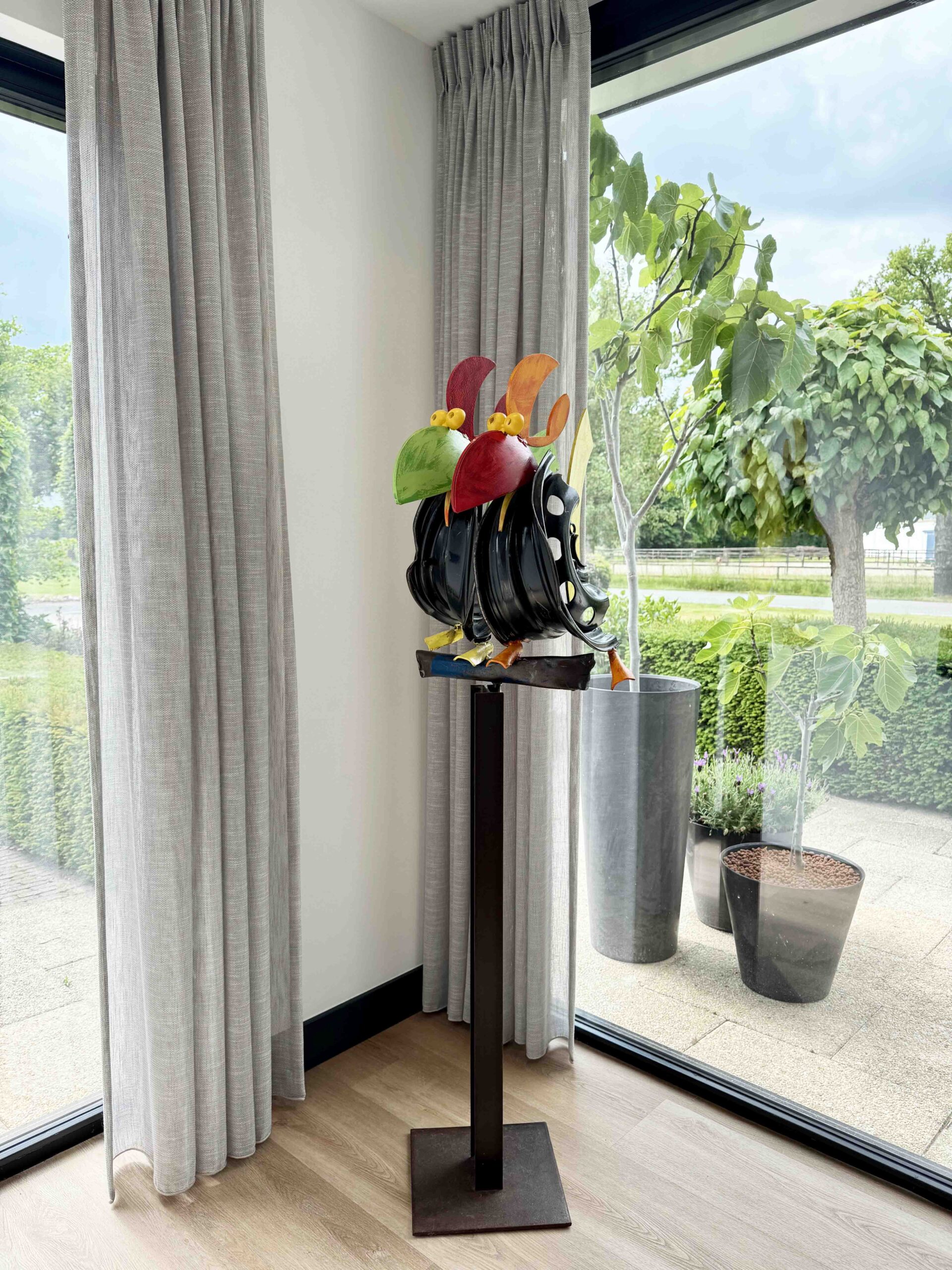 The weathered, oxidized iron of this sculpture forms a sharp contrast to its many vibrant colors, making the artwork instantly eye-catching. Ridderbusch’s work fascinates many people and is perfectly suited as outdoor art. Not only for its size, but also for its “natural” character: the rusty brown of the iron and the fresh, cheerful colors of the fantasy animals. In a garden or outdoor space, but of course also in your interior, Ridderbusch sculptures are a true eye-catcher to which the eye is drawn again and again.