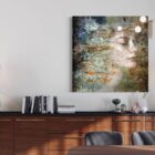Aqua II is an impressive work of art by Karin Vermeer. The name refers to the color aqua, which gives the work an extra warm and inviting look. The model in the artwork seems completely absorbed in this warm atmosphere. This artwork combines photographic techniques with acrylic on linen and is further enriched with various types of textured pastes, resulting in a stunning and tactile look.