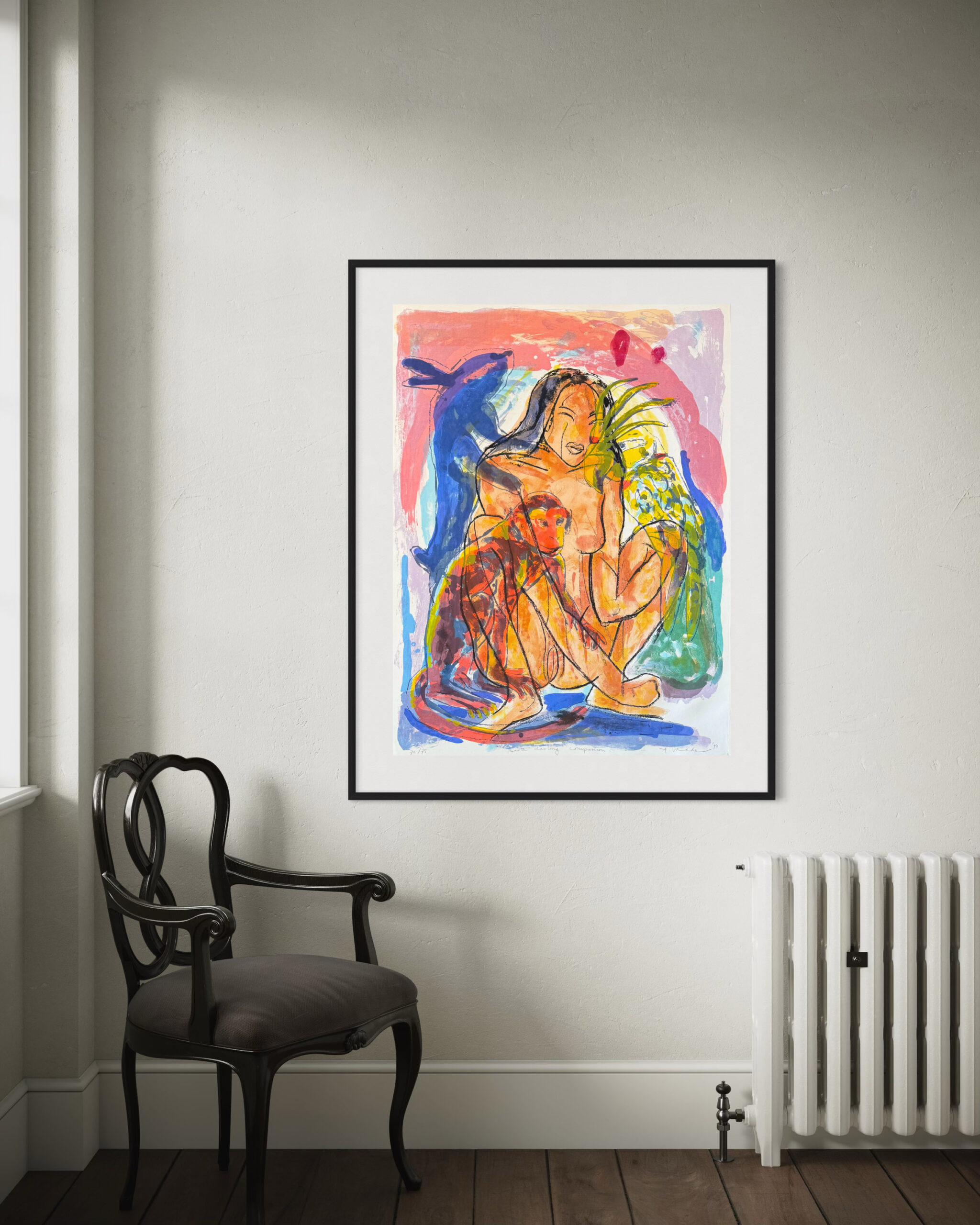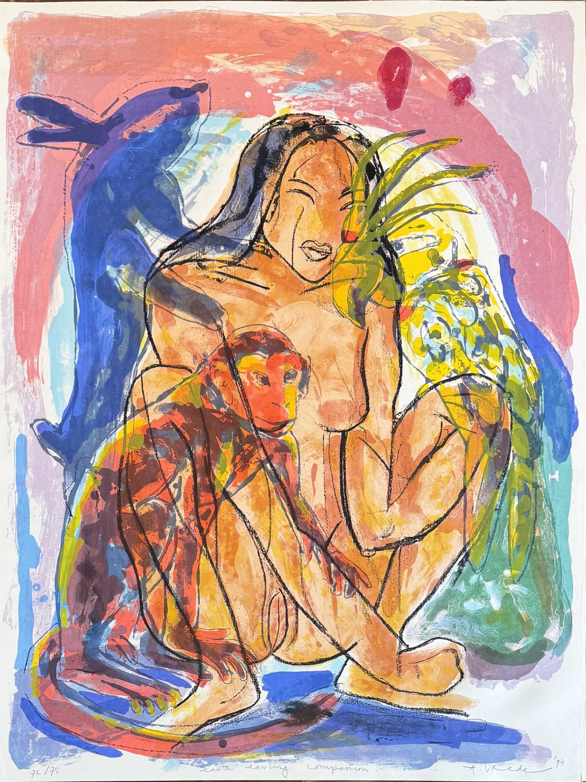 Earth, darling, companion is a beautiful, original silkscreen by Anton Vrede from 1994. The silkscreen is numbered and signed by Anton Vrede and has a size (without frame) of 80x110cm. This is our last copy and we are offering it for a very special price. Ordering online is also possible. Shipping costs €8,95 – shipping 1-3 working days.
