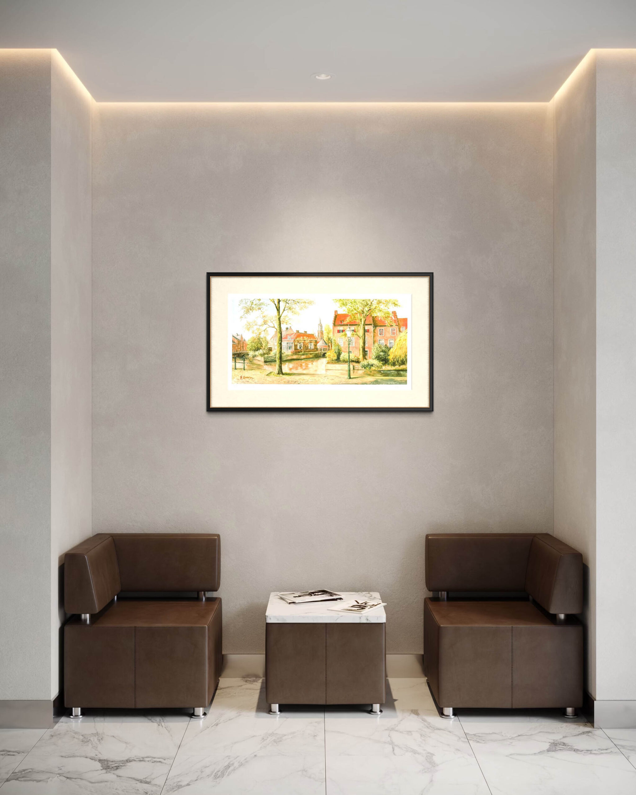 The giclées come standard in an attractive black frame with passepartout, which perfectly showcases the artwork. The artwork is framed with Museum glass.