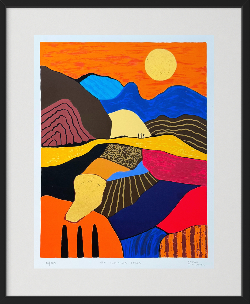 Now that we are going to focus our collection mainly on painting, we are offering the last copies of Ronald Boonackers silkscreens at a very attractive price. This silkscreen is in very good condition and was made in a small edition of 125 copies. The silkscreen comes with certificate of authenticity. A special feature is that Ronald incorporated gold leaf into the artwork. The image size is 38×48 cm. Should you have the artwork framed the size will be approximately 58×68 cm.